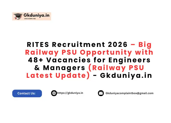 RITES Recruitment 2026 is a valuable opportunity for students and professionals aiming for Railway PSU jobs in 2026. With trusted exposure, competitive salary, and real project experience, RITES continues to attract serious aspirants every year. Always refer to official sources like https://www.rites.com/Career and keep checking gkduniya.in for verified, student-friendly updates. Preparing early and staying informed can make a real difference.